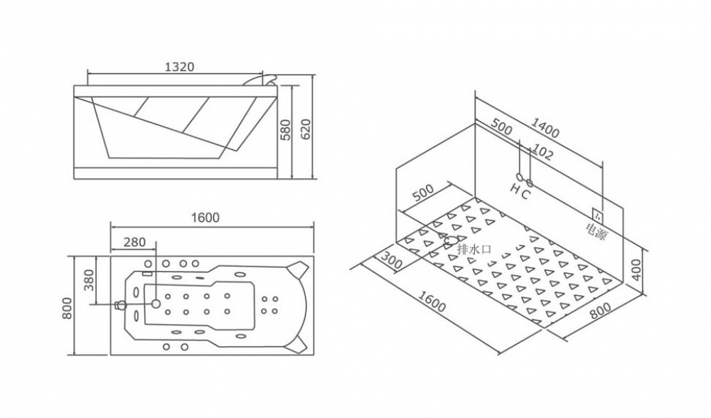 | Dimension | 1600 (L) x 800 (W) x 620 (H) mm |