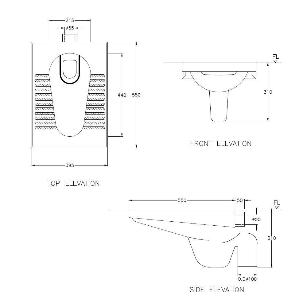 Santana 320 (Cleansing/Normal) Wall Hung Urinal