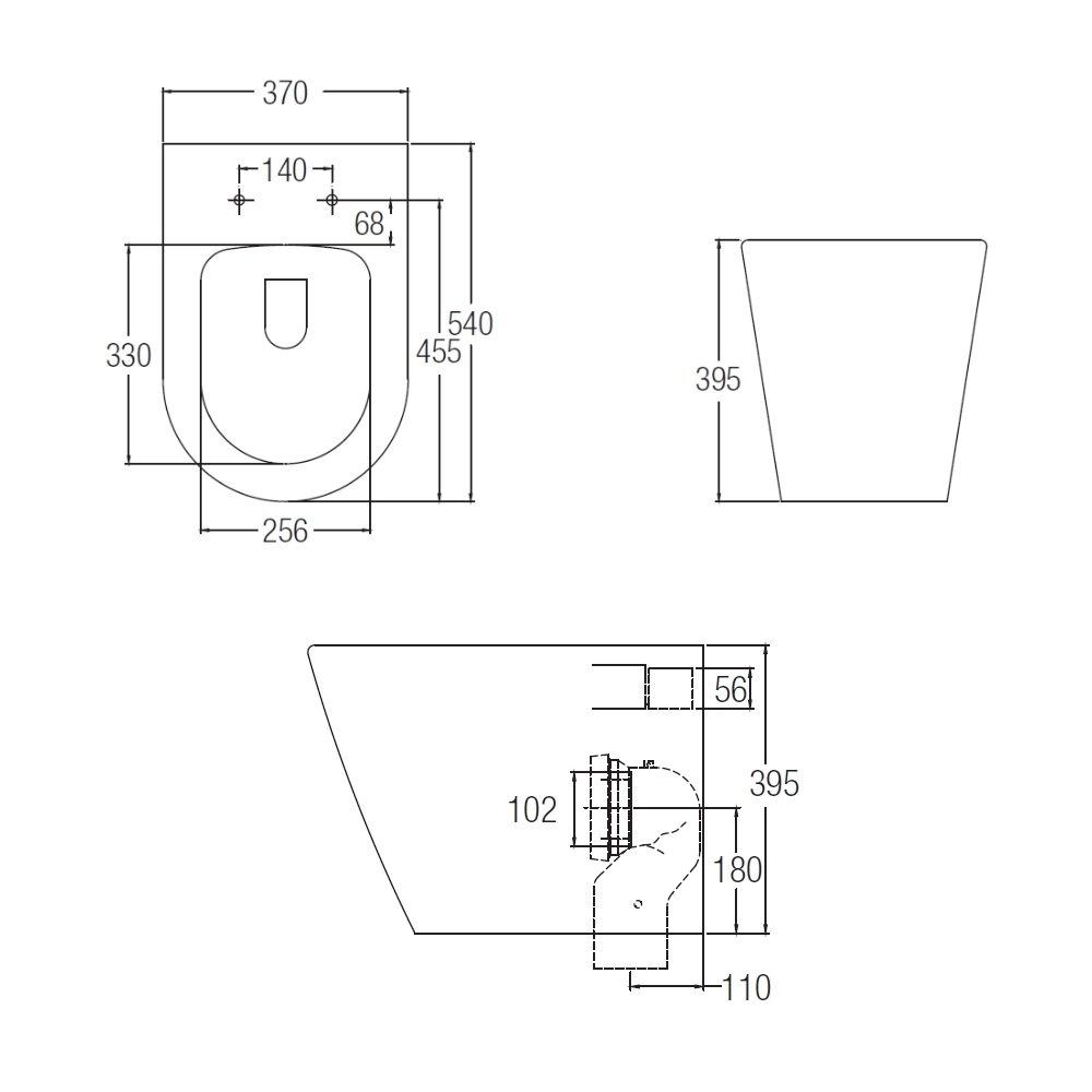 Basin Dimension: (L) 540mm x (W) 370mm x (H) 395mm.